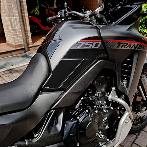 Resin Bike Adesivi Moto Compatibile con Honda Transalp XL 750 2023. Protezione Moto Laterali Serbatoio da Urti e Graffi. Coppia di Adesivi 3D Resinati Neutro Metallizzato