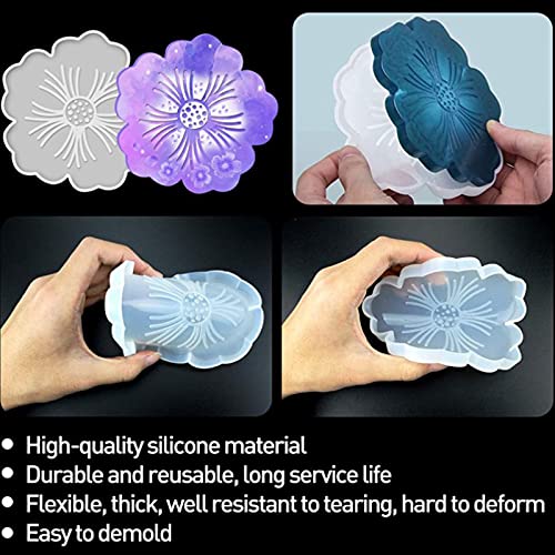 【Forme di fiori uniche】 Il set di stampi in silicone è composto da forme di fiori uniche. La confezione contiene 1 grande forma a forma di petalo in silicone e 1 piccola forma a forma di petalo in silicone, il diametro del fiore grande è di 350 mm e il diametro delle piccole forme di sottobicchiere è di 120 mm. Puoi usare questo stampo in silicone per realizzare sottobicchieri di qualsiasi colore.