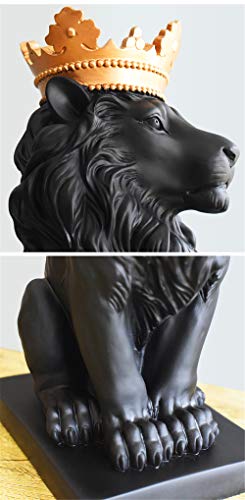 Resina Astratto Nero Bianco Corona Leone Scultura Statua Artigianato Home Desk Decorazione Resina geometrica Animale selvatico Leone Statua Artigianato (nero)