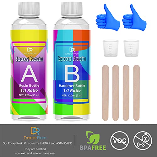 Resina Epossidica - 240ml / 10oz di Resin Epossidica Trasparente Bicomponente per Colata & Rivestimento, Creazione Gioielli Fai da Te - Rapporto 1:1 Colla Resina Epoxy con Indurente per Legno, Pittura