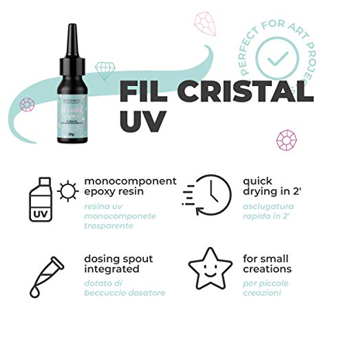 Resina epossidica UV Trasparente Monocomponente FIL CRISTAL UV, Ideale per creazioni di gioielli, orecchi, Bijoux, Decorazioni, fai da te (25 gr)