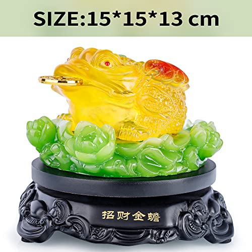 Feng Shui in Resina Naturale Come Jade Money Frog (Three Legged Toad/ricchezza Rana) Sit on Lotus Statue Home Office Decorazione