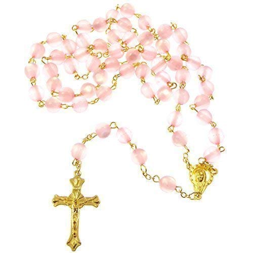 Rosa Resina Rotondo Rosario 56cm Lunghezza Catena Oro