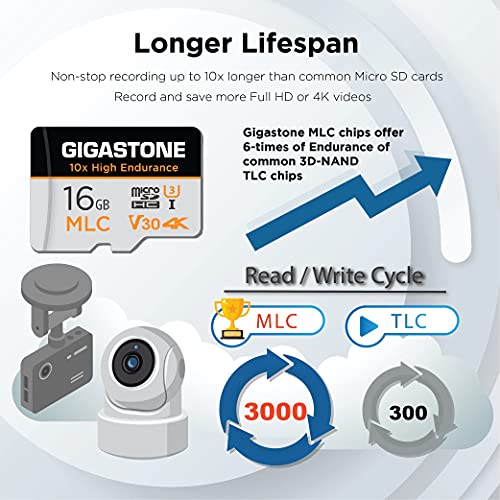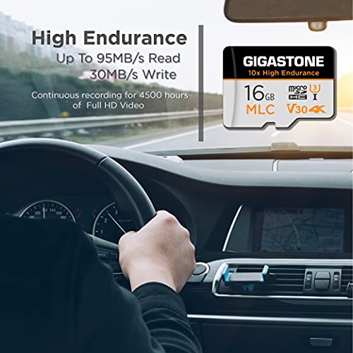 10x Alta Resistenza - Gigastone MLC Micro SD 16GB, Set da 5, 10x High Endurance, 16 GB per Telecamera Sorveglianza, Gopro, Dashcam, Lettura fino a 95 MB/s. Per video 4K, U3 V30 C10 + Adattatore SD