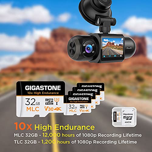 [10x High Endurance]: Progettato per Dashcam e videocamera di sicurezza domestica. La durata della scheda Micro SD MLC è 10 volte più lunga della normale scheda Micro SD. Consente 18 mesi di utilizzo con registrazione video Full HD Dashcam (4 ore al giorno). È la prima scelta per una richiesta di registrazione video costante e massiccia.