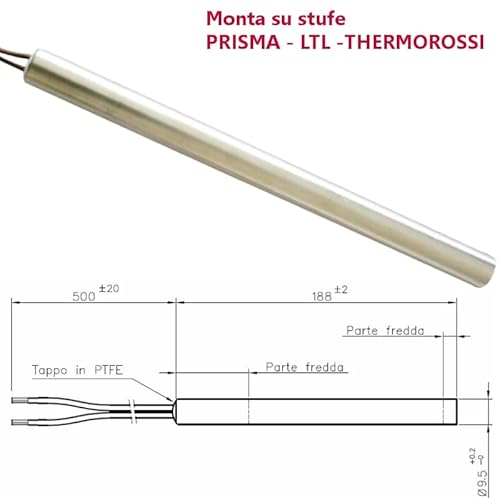 Resistenza Stufa A Pellet Diretta 9,5mm 250w 188mm Prisma Thermorossi Ltl