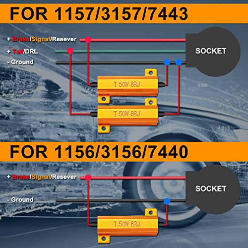 4pcs 50 W 8OHM LED resistenze di carico per LED indicatori di direzione o luci Targa a LED o DRL (Fix Hyper Flash, Warning Cancellor) con 8PCS Quick Wire Clip