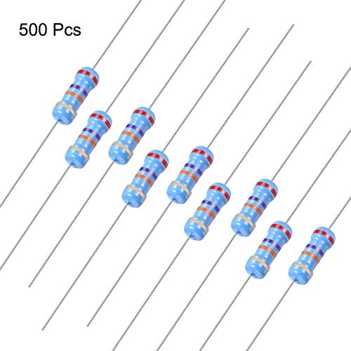 Resistor, 500 resistori 27 K Ohm, 1/2 W 5% Tolerance Carbon Film Resistors, Axial Lead, 4 Bands for DIY Electronic Projects and Experiments