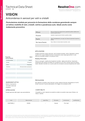 Resolvo One Vision Antiappannante Vetri e Cristalli auto, visiera casco, parabrezza scooter 75ml Car Glass Anti-fog Spray