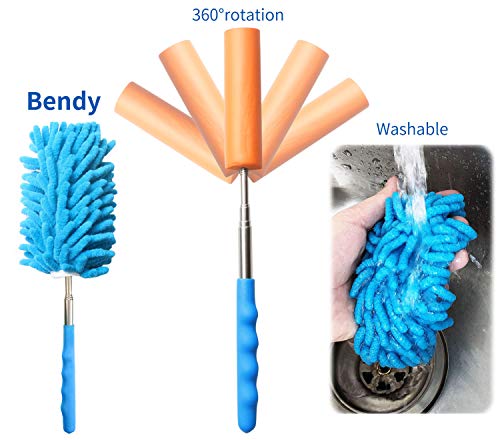 【Pacchetto】:Viene fornito con spolverino telescopico in microfibra 3pcs: spolverino telescopico pieghevole 1 pz (BLU), spolverini estensibili 2 pezzi (verde e rosso).
