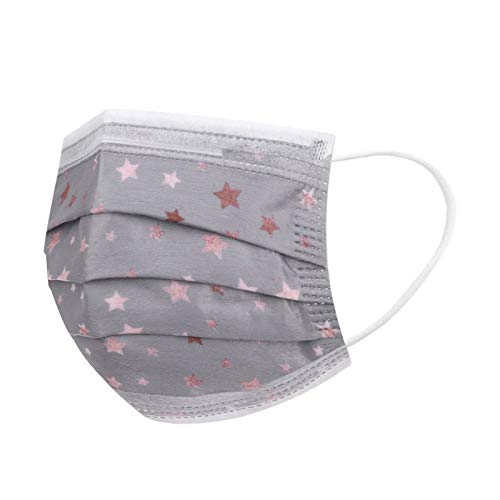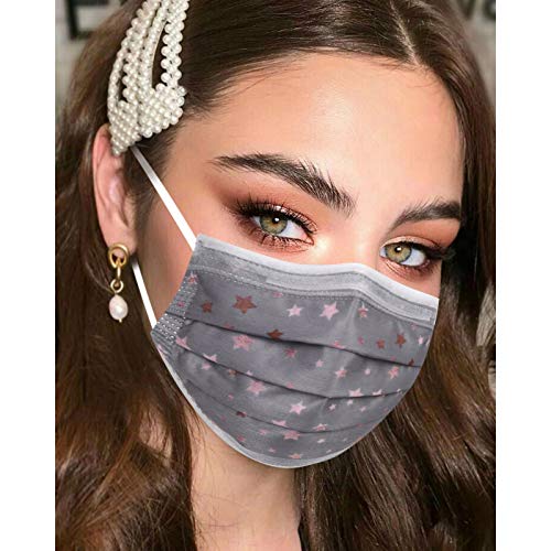 Resplend Adulti grigio Maschere Tessuto Viso Cotone Stella a cinque punte Stampa Antipolvere Visiera Bocca Faccia USA e Getta 3 Strati Adatto Comfort Traspirante per Adulti,10/20/30/50/100 Pezzi