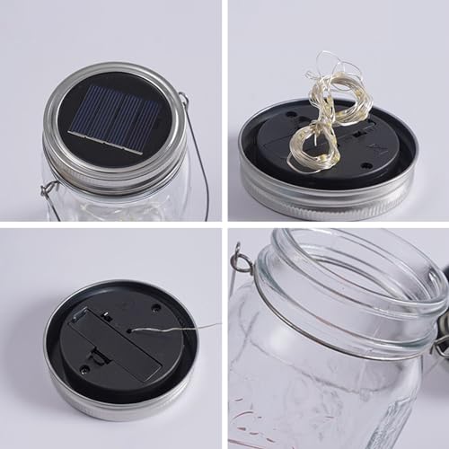 ✌【Risparmio Energetico】Questa luce solare per barattolo di vetro ha 30 perline a LED e una batteria AAA. La luce calda di ogni luce solare da giardino crea un'atmosfera calda e romantica di notte. Lanterne da esterno solari, se c'è abbastanza luce solare, le luci solari saranno completamente cariche entro 4-6 ore. Si accenderà per 6-10 ore quando è completamente carico.