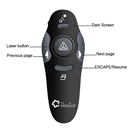 TELECOMANDO PRESENTER WIRELESS, Frequenza di Funzionamento wireless 2.4G RF, laser con portata fino a 100 metri, in modo da permettervi di muovervi liberamente per la stanza e interagire con il pubblico. Il puntatore laser rosso di questa penna per presentazioni lo rende di facile visione contro la maggior parte dei sfondi, utile per evidenziare le aree chiave di diapositive.