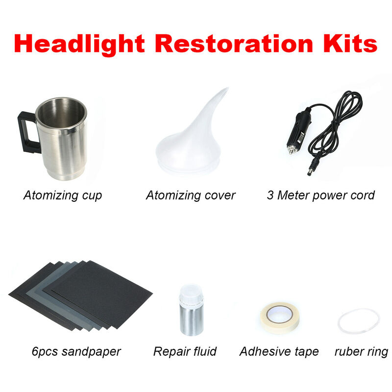 Specifiche: Fluido di riparazione: 100 ml Lunghezza cavo accendisigari: 3 m Dimensioni confezione: 25* 15* 5 cm Peso della confezione: 650 g Istruzioni per l'uso 1. Controllare il danno del faro, i sintomi comuni sono: screpolatura, ingiallimento, ossidazione, sfocatura, muta, graffi e altri sintomi. tutt'intorno alla lampada con pellicola protettiva e lucidare il coperchio della lampada con carta vetrata fino a quando non c'è lucentezza, utilizzare 180 #, 240 #, 360 #, 600 #, 800 #, 1200 #, lavare e lucidare a croce con acqua da piccola a grande, Lucidare accuratamente e non omettere l'ambito, evitare la rilavorazione, pulire con acqua dopo la lucidatura e asciugare con un asciugamano. 3.Aggiungere liquido nella tazza di nebulizzazione (il liquido di rivestimento non utilizzato può essere recuperato e poco altro può essere aggiunto in modo appropriato), riscaldarlo a vapore, accendere la lampada frontale, scollegare l'alimentazione dopo l'atomizzazione, esporre a il sole, pulire