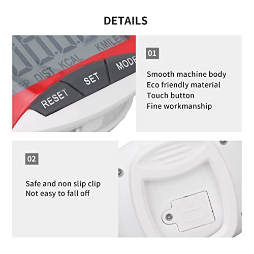 Restokki Contapassi, contapassi per Esercizi di Camminata Sportiva Display LCD Portatile Contapassi per Sport a Schermo Trasparente con Clip per Adulti, Anziani e Bambini(Rosso)