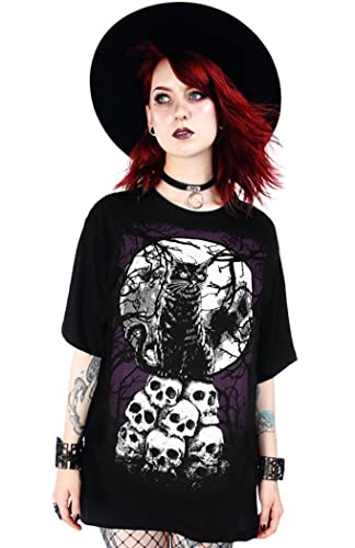 RESTYLE Morbid Cat Gothic Skulls Oversized T-Shirt - Black (S)