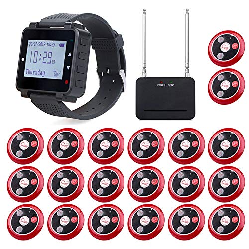 Retekess T128 Cercapersone Ristorante, Sistema di Chiamata Wireless, 1 Orologio e 20 Pulsanti di Chiamata e 1 Amplificatore, Adatto per Ospedali Bar Dentale Pizzeria (Pacchetto di servizi nero)