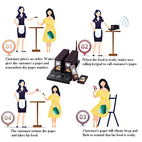 Il sistema di chiamata è adatto per ristorante e hotel che il cameriere usa la tastiera chiamante per chiamare il cercapersone del cliente di venire a portare il suo cibo;