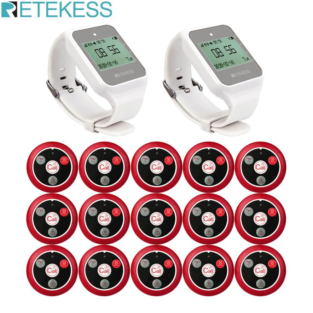 Retekess Restaurant Pager Hookah Wireless Waiter Calling System 433MHz 2 TD108 Watch Receiver+15 Call Button Transmitter