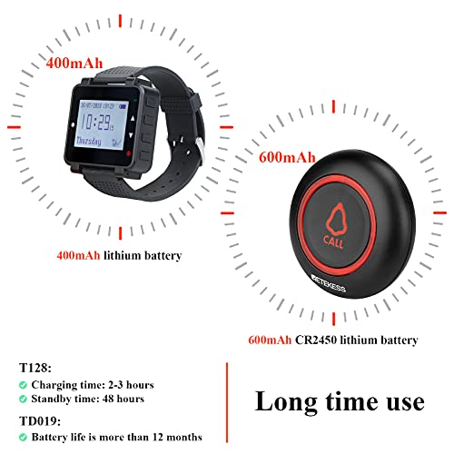 Retekess T128-TD019 Cercapersone Wireless, Pulsante di Chiamata di Emergenza del Sistema di Allarme con Batteria Integrata da 600 mAh per Pazienti Anziani (1 Ricevitore e 2 Trasmettitori)