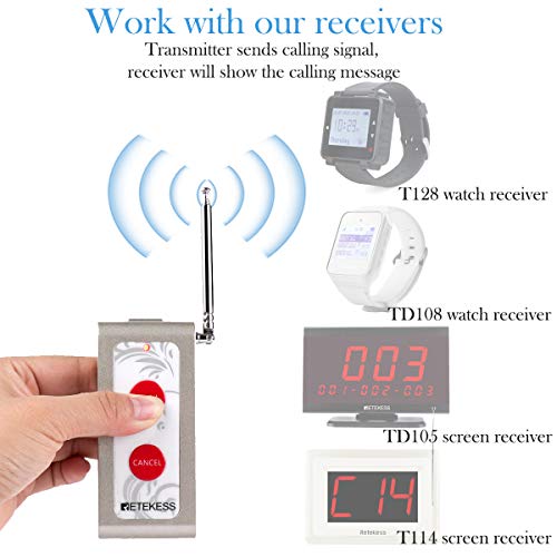Retekess TD004 Cercapersone Cameriere Pulsante Trasmettitore, Lunga Distanza Forte Segnale Attraverso Muri, per Ristorante Sbarra Ospedale Clinica dentista