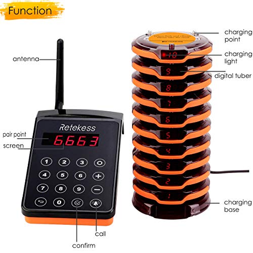 Retekess TD156 Cercapersone Ristorante Wireless Sistema di Chiamata Resistente 800M Lungo Tempo Standby 48H Impermeabile IP67 Antifurto, Bar Hotel Ospedale, Mantenere Distanze, Nessuna Coda