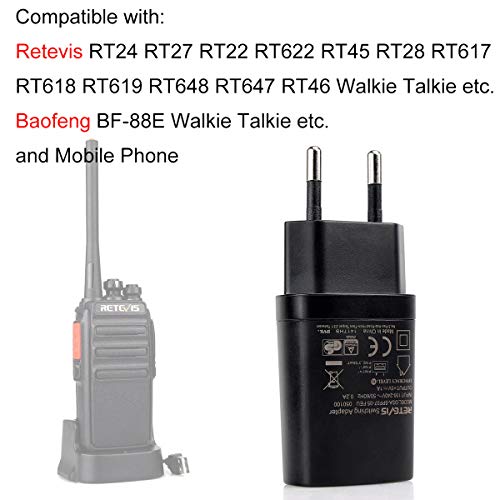 Retevis USB Adattatore 5V 1A Caricabatteria Compatibile con Walkie Talkie RT24 RT45 RT22 RT622 RT27 RT28 RT648 RT649 RT618 RT619 RT46 RT667 Baofeng BF-88E Ricetrasmettitore (2 pz)