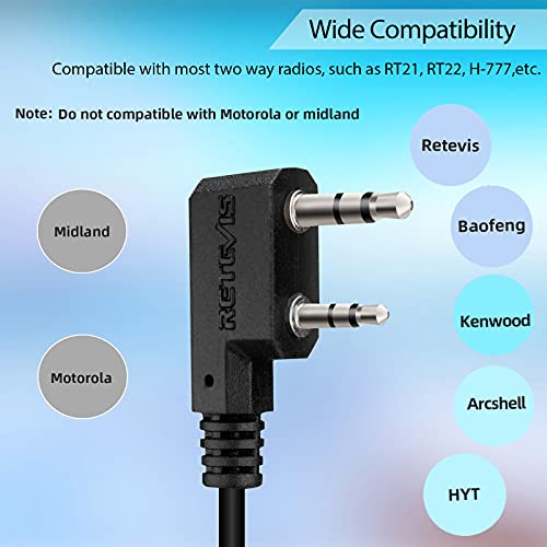 Retevis EHK010 Auricolare per Casco Moto con 2 Pin, Auricolare per Casco con Microfono, Compatibile con Radio Bidirezionale RT27 RT27 Baofeng UV5R 888S Walkie Talkie eSynic Kenwood (1 Pezzo)