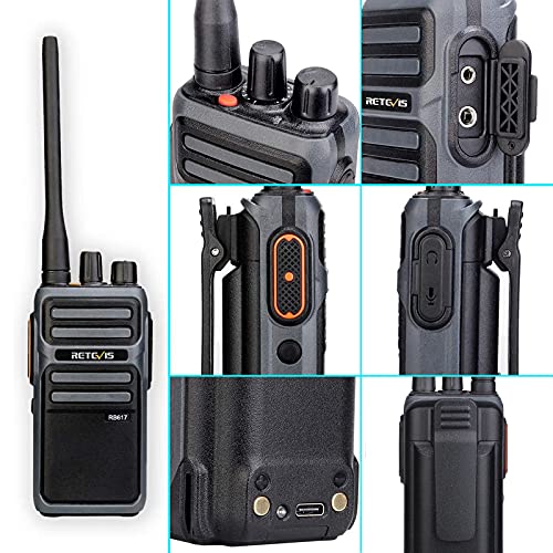Retevis RB617 Walkie Talkie Ricaricabile, Radio Bidirezionali da 4400mAh con Cavo USB Type-C 2 in 1, PMR446 VOX, Allarme di Emergenza, Ricetrasmettitore per Spedizione, Sci (Nero e Grigio, 2 Pezzi)