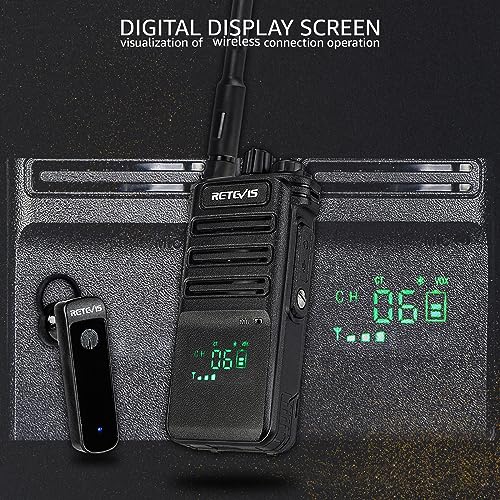 Retevis RB689 Walkie Talkie Senza Fili, Ricetrasmettitore a Lungo Raggio con Cuffie Wireless, VOX, Torcia Elettrica, Walkie Talkie per Sicurezza (Nero, 2 Pezzi)