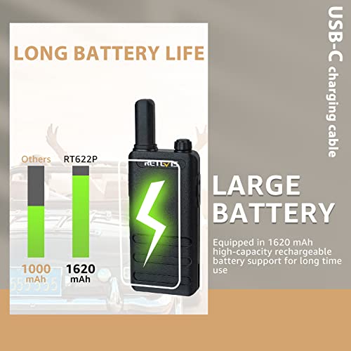 Retevis RT622P Walkie-Talkie, PMR446 1620 mAh Portatile Ricetrasmittenti Ricaricabile, USB-C, VOX Vivavoce, Negozio Mini Ultra Sottile Walkie Talkie Professionali per Famiglia (2 Pezzi, Nero)