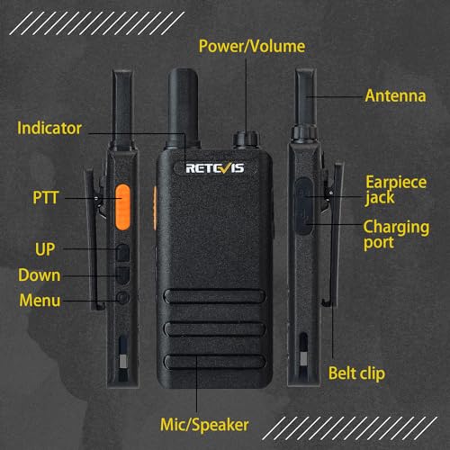 Retevis RT622P Walkie Talkie, 1620 mAh Ricaricabile Ricetrasmittenti USB-C Ultrasottile 15mm, VOX, Professionali Walkie Talkie Portatili con Auricolari per Ristoranti (4 Pezzi, Nero)