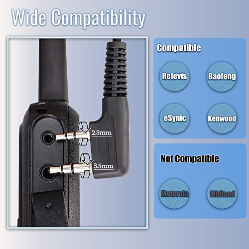 Retevis Walkie Talkie Auricolare con Mic Kenwood 2 pin Tipo-C Cuffia Compatibile con Walkie Talkie RT24 RT28 RT622 RT27 RT618 RT619 BaoFeng BF-888S Kenwood Proster (2 pz)