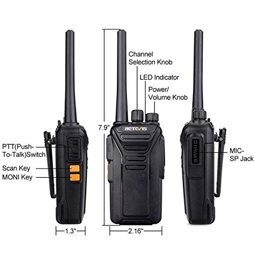 Retevis RT27 Walkie Talkie, Walkie Talkie Professionali, PMR446 Licenza-Libero VOX 16 Canali CTCSS/DCS, Walkie Talkie Ricaricabili con USB Caricatore, Ricetrasmittenti Portatili (2 Pezzi, Nero)
