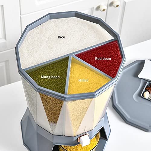 Rethyrel Comptoir - Dispenser di cereali, dispenser per cibo secco a 4 griglie | Contenitore ermetico per alimenti secchi a controllo facile girevole a 360° per riso, fagioli