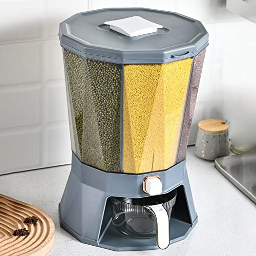 Grande volume: il secchio per riso girevole ha una grande capacità che può contenere vari alimenti secchi come millo, riso nero, mais, soia, fagiolo mungo, fagiolo rosso, ecc. Mantiene la cucina organizzata.