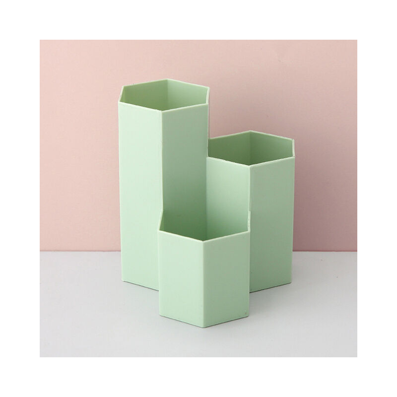 Caratteristiche:1. Alto e basso, il livello è chiaro.2. 3 cilindri in uno, classificati e ordinati.Tubo alto: adatto per riporre spazzole lungheTubo centrale: può mettere una spazzola o altroTubo corto: può ospitare uova di bellezza, smalto per unghie, ecc.3. Materiale PS, robusto e durevole.4. design esagonale, stoccaggio texture.Specifica:Materiale: PlasticaColore: verde, blu, nero, trasparente, rosa, BeigeFormato: 10*12cmNote:1. A causa del diverso monitor ed effetto luce, il colore effettivo dell'articolo potrebbe essere leggermente diverso dal colore mostrato sulle immagini. Grazie!2. Si prega di consentire una deviazione di misurazione di 1-3cm a causa della misurazione manuale.Cornici E Articoli Da Esposizione includono:Scatola 1 X organizer per il trucco
