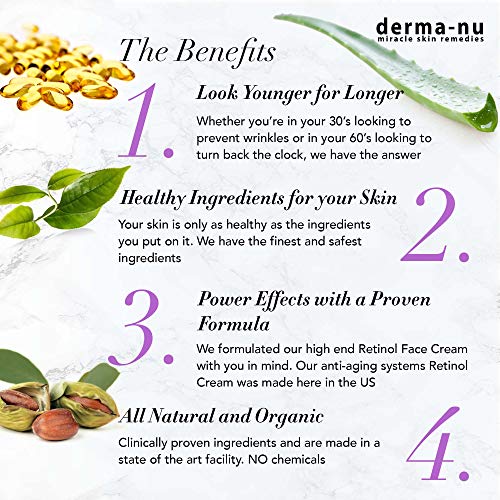 Retinolo Siero 2,5 % con acido ialuronico siero e vitamina E da Derma - nu - Miglior Siero Anti Aging di linee sottili e rughe - trattamento della pelle clinicamente provata per il viso - 100 % garantito - bottiglia 1,25 once