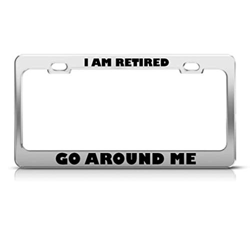 I Am Retired Go Around Me Humor License Plate Frame Stainless Metal Tag Holder