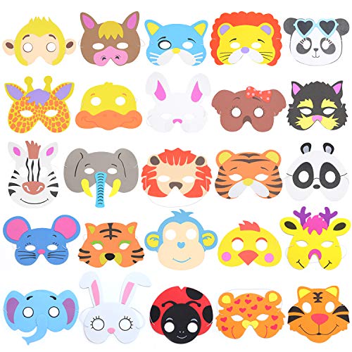 Il pacchetto include: 50 maschere di animali in schiuma a motivo casuale con cinghie elastiche.