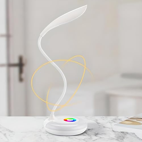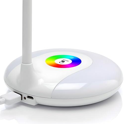 Retoo Lampada da scrivania USB bianca con 256 luci colorate RGB, 16 LED, touch dimmerabile, 3 livelli di luminosità, lampada da tavolo per lettura, arbait, studi, luce notturna da 5 W, ragazzi