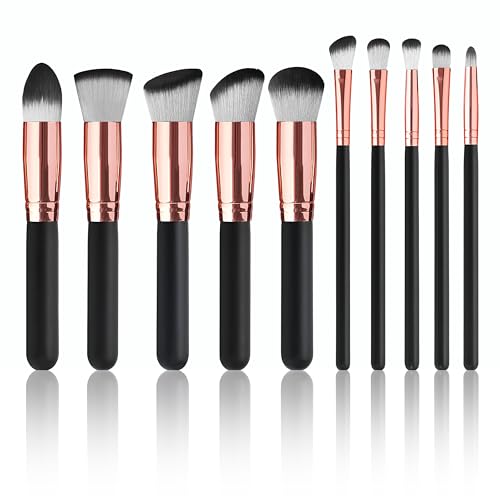 Retoo Set di pennelli per trucco, set da 10 pezzi, pennelli professionali per il trucco, ideali per cipria, crema o liquido, eyeshadow eyeliner in cipria, nero