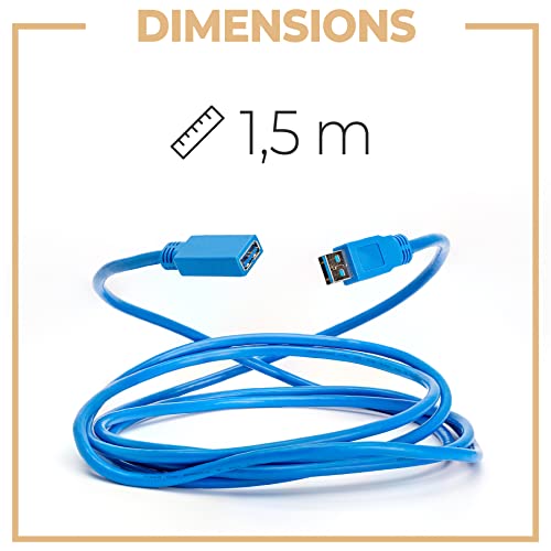 Struttura rinforzata - Questo cavo di prolunga standard USB 3.0 (maschio a femmina A) presenta una struttura rinforzata. Invece della treccia di nylon comunemente utilizzata nei cavi, è stata utilizzata una treccia in PVC di alta qualità. Dona al cavo una maggiore resistenza all'umidità e ne aumenta significativamente la durata. L'intreccio in PVC resistente all'abrasione e flessibile ha un colore blu brillante che facilita la ricerca.