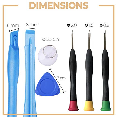 Ampia gamma di applicazioni: con questo set non è possibile riparare solo i telefoni cellulari. È possibile anche smontare altri piccoli dispositivi elettronici come tablet, laptop, parti del computer, smartwatch, lettori MP3 o persino fotocamere e videocamere. Tutti gli strumenti inclusi nel set sono stati selezionati in modo da poter riparare la maggior parte dei moderni elettrodomestici.
