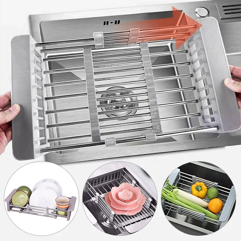 Retractable Stainless Steel Sink Strainer Drain Vegetable Fruit Drainer Basket Rack Storage Tool Sink Filter Rack Shelf