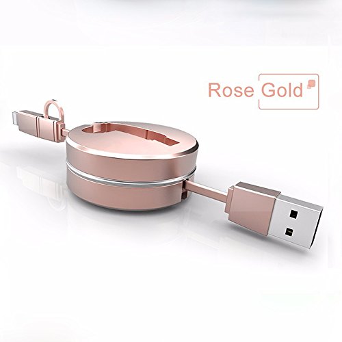 Cavo Retrattile USB 2 in 1 per IOS e Android [Garanzia a Vita] Cavo per iPhone 7 / 7 Plus / 6 / 6 Plus / 6S / 6S Plus / 5S / 5C / 5 / SE, iPad Air / 2, iPad mini / 2 / 3, iPad 4, iPad Pro, e Tutti Gli Smartphone di Android--100cm Rose Gold