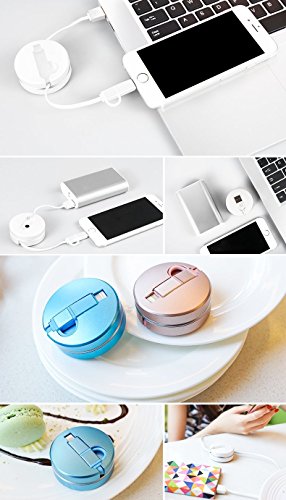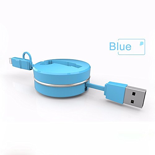 Cavo Retrattile USB 2 in 1 per IOS e Android [Garanzia a Vita] Cavo per iPhone 7 / 7 Plus / 6 / 6 Plus / 6S / 6S Plus / 5S / 5C / 5 / SE, iPad Air / 2, iPad mini / 2 / 3, iPad 4, iPad Pro, e Tutti Gli Smartphone di Android--100cm Blue