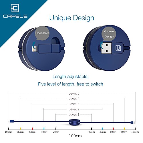 Cavo Retrattile USB 2 in 1 per IOS e Android [Garanzia a Vita] Cavo per iPhone 7 / 7 Plus / 6 / 6 Plus / 6S / 6S Plus / 5S / 5C / 5 / SE, iPad Air / 2, iPad mini / 2 / 3, iPad 4, iPad Pr (Blu)