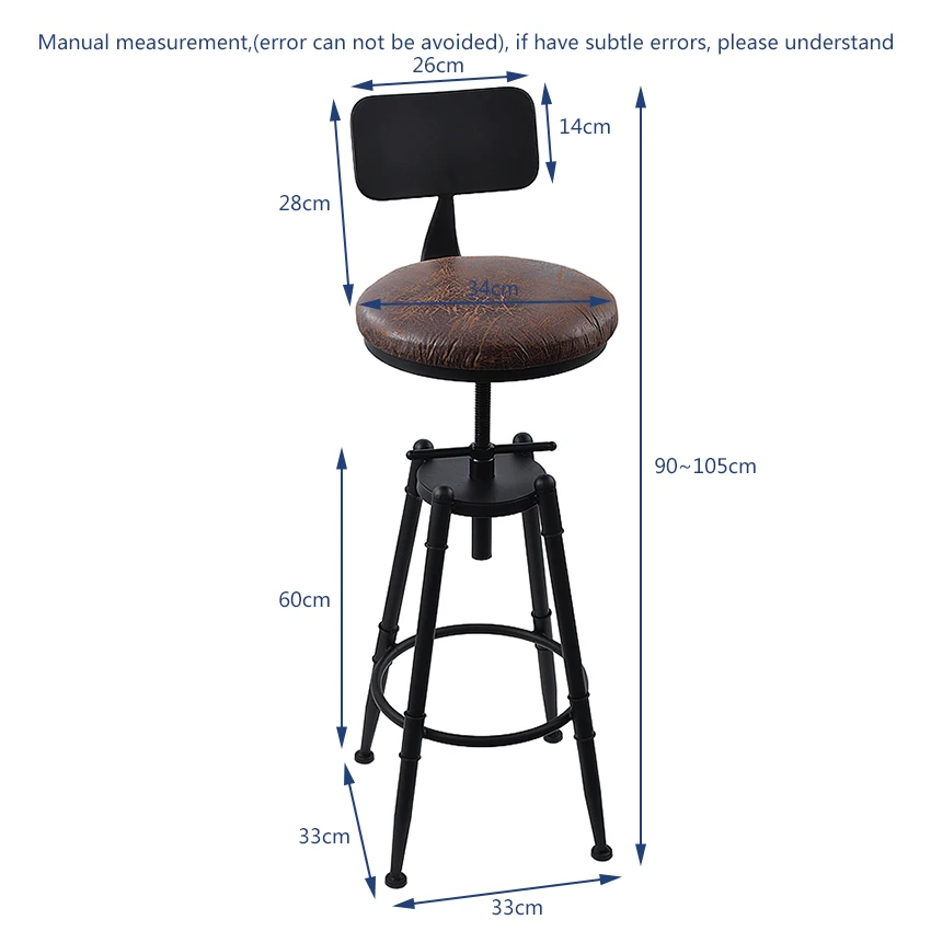 Retro American Country Style Swivel Bar Chair Stool Iron Art Wood/Soft Cushion Seat High Footstool Rotatable Liftable Bar Chair