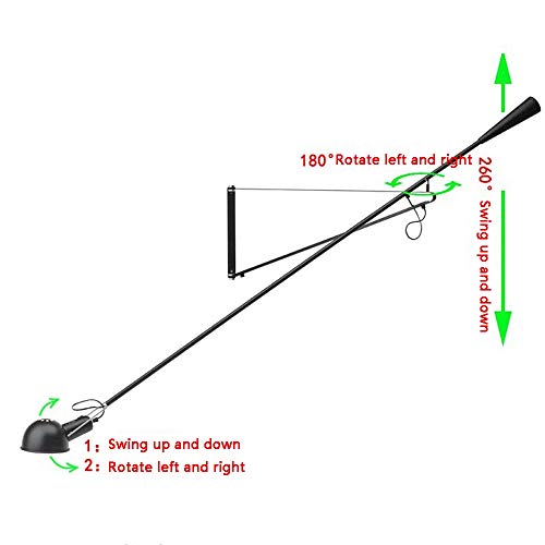 Retro Braccio Lungo Applique da Parete Industriale Vintage E27 Lampada da Parete Regolabile Girevole Lampada da Comodino con Interruttore Soggiorno Camera da Letto Lampada da Lettura,Black/135cm